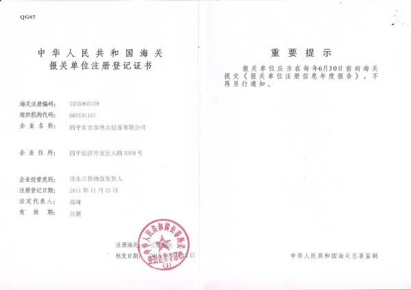 • SIPING JITAI HEAT EXCHANGE EQUIPMENT CO.,LTD. 四平市吉泰熱力設(shè)備有限公司